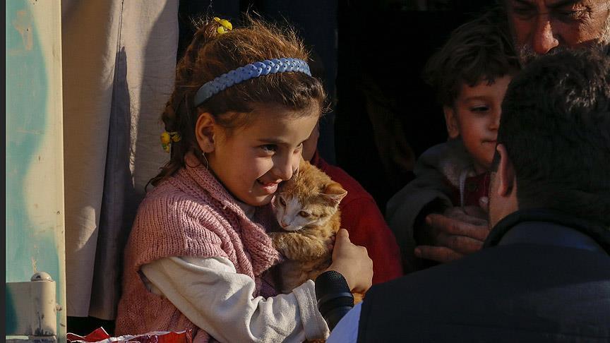 Musul'un güneydoğusunda ve 40 kilometre mesafede yer alan Hazır Çadır Kampı'na sevk edilmeyi bekleyen 6-7 yaşlarındaki Melek, elindeki minik kedisiyle oradaki herkesin dikkatini çekti.