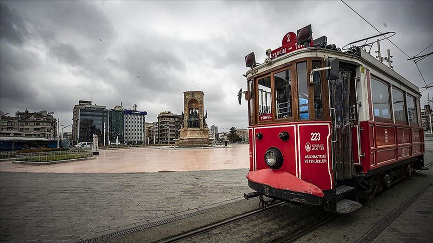 İstanbul'un simgelerinden olan Beyoğlu'ndaki nostaljik tramvay, koronavirüs çağrısına uyulması ve 65 yaş ile üstündekilere getirilen sokağa çıkma kısıtlaması sonucu boş kaldı.