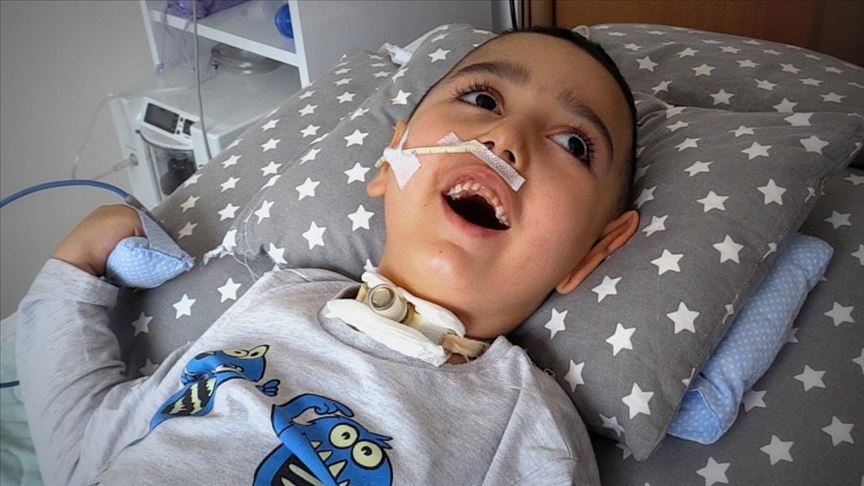 Gaziantep'te bademcik ameliyatı sonrası görme yetisinin tamamını, vücut fonksiyonlarının ise yüzde 94'ünü kaybeden 4 yaşındaki Hüseyin Beyaz, yaklaşık 10 aydır sadece çalan kapı ziline gülümseyerek tepki veriyor.