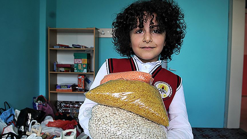 2. sınıf öğrencisi Hasan Görünülü, kampanyaya evden getirdiği pirinç, bulgur, makarna ve bir miktar harçlığı ile katkı sunduğunu belirtti.