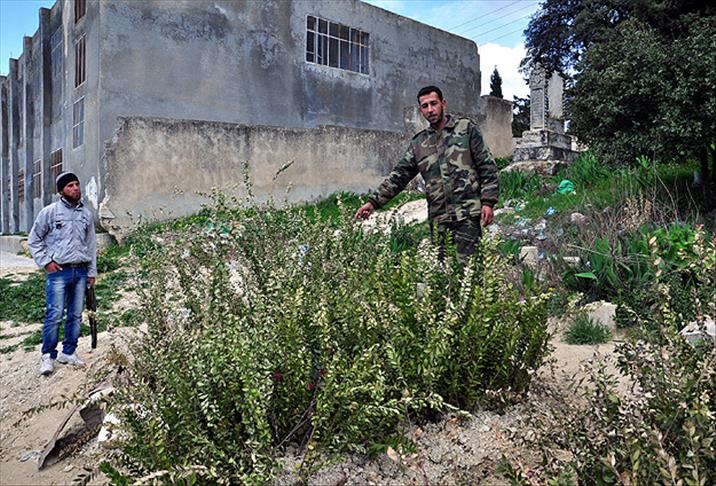 Suriye'de yaklaşık 2 ay önce Esed rejimine bağlı ordu birlikleri tarafından bombalanan okulda can veren 4 çocuğun mezarı, okulun bahçesi oldu.