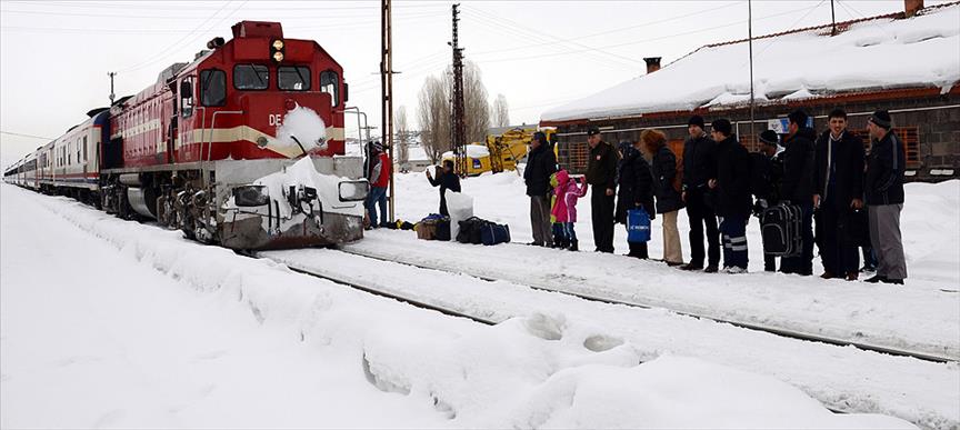 Ağır kış şartlarının yaşandığı Doğu Anadolu Bölgesi'nde demiryolu işçileri, kar kalınlığı yer yer 3 metreyi bulan bölgede, kar küreme makinelerinin yardımıyla demiryollarını açık tutmaya çalışıyor.