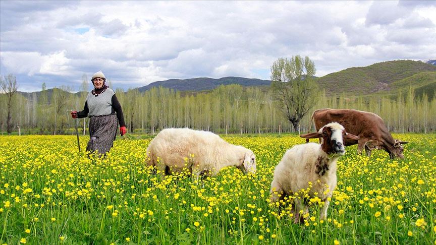 İlkbaharın gelişiyle karların eridiği ve doğanın canlandığı ilçede, tarım alanları hava sıcaklığının artmasıyla sarı tonlardaki düğün çiçekleriyle süslendi.