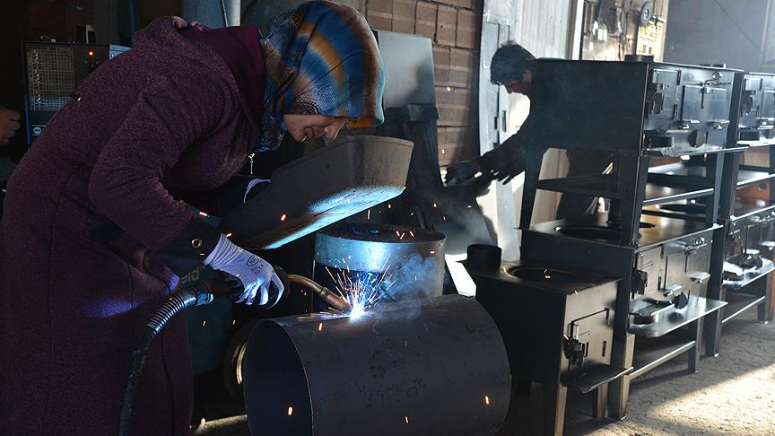 Ordulu Özlem Abça, soba imalatı yapan eşine yardım ile başladığı meslekte gösterdiği performansla ustalara adeta taş çıkartıyor.
