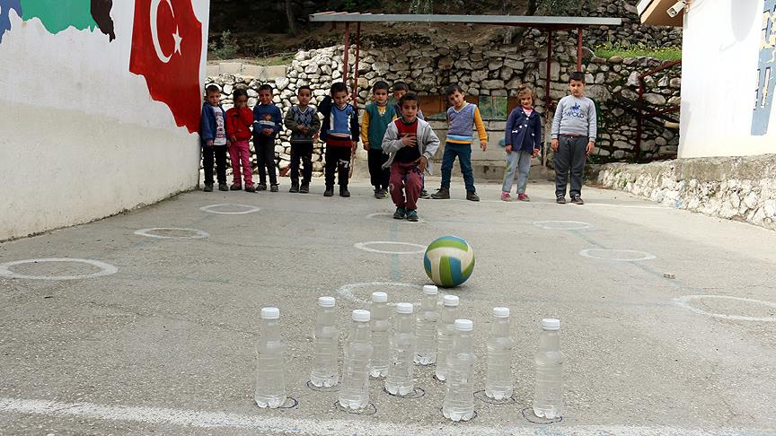 Hatay'ın Hassa ilçesine yaklaşık 22 kilometre uzaklıkta bulunan Amanos Dağı'nın eteklerindeki Güvenç Mahallesi'nde, 98 öğrencisi bulunan ilkokulda öğretmenler, öğrencilerin bovling sporunu merak etmesi üzerine farklı bir yöntem geliştirdi.