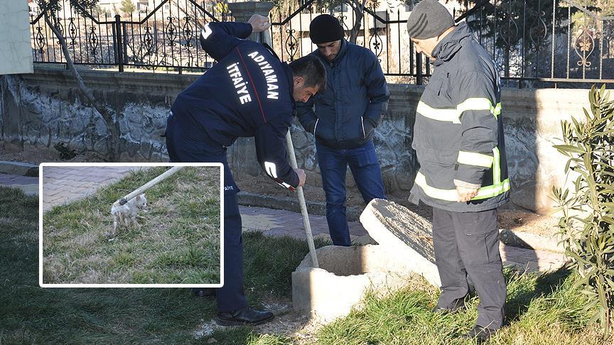 Adıyaman'da bir sitenin içerisinde bulunan rögara düşen yavru kediyi itfaiye ekipleri çıkardı.