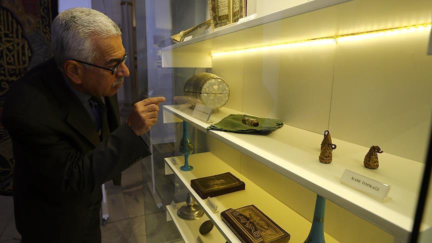 Demir, sergide Kabe örtüsü ve toprağının da yer aldığını belirterek, Osmanlı dönemine ait tespih, Kuran-ı Kerim ile Mevlevi dervişlerince 40 günlük çile evresinde az uyumak için dayanak olarak kullanılan müttekalar, dervişler tarafından fakirlere yiyecek toplamak için kullanılan keşkülü fukaraları da sergilediklerini söyledi.