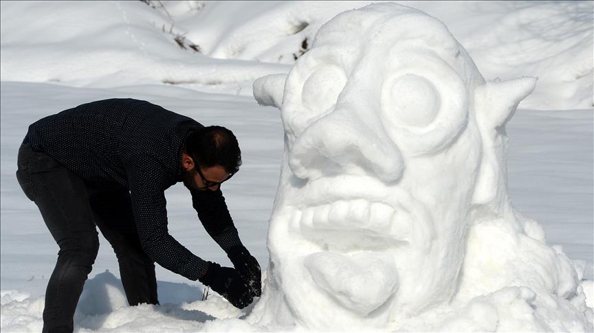 Çukurova Üniversitesi Güzel Sanatlar Fakültesi Seramik Tasarım Bölümünden 2015'te mezun olan ve atanamadığı için Yolcular köyünde ailesiyle yaşayan Özdemir, kardan heykeller yaparak kentte çetin geçen kış mevsimini eğlenceye dönüştürüyor.