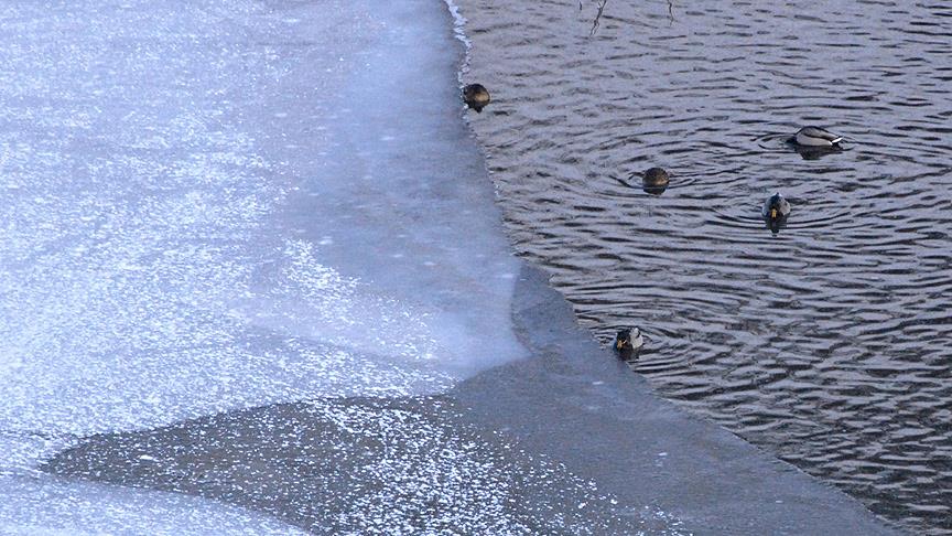 Kars'ın Sarıkamış ilçesinde bulunan Ördek Gölü'nün yüzeyi buzla kaplandı.