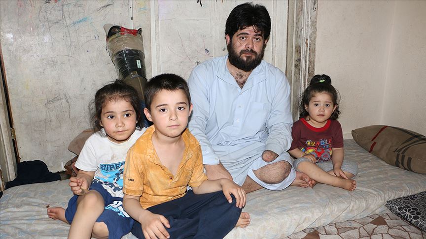 Suriye'de Esed rejiminin bombardımanı sonucu sol eli ve ayağı kopan, daha sonra eşini de bombardımanda kaybeden Suriyeli Eymen Humeyra, 3 çocuğuyla sığındığı Türkiye'de acılarını unutmaya çalışıyor.