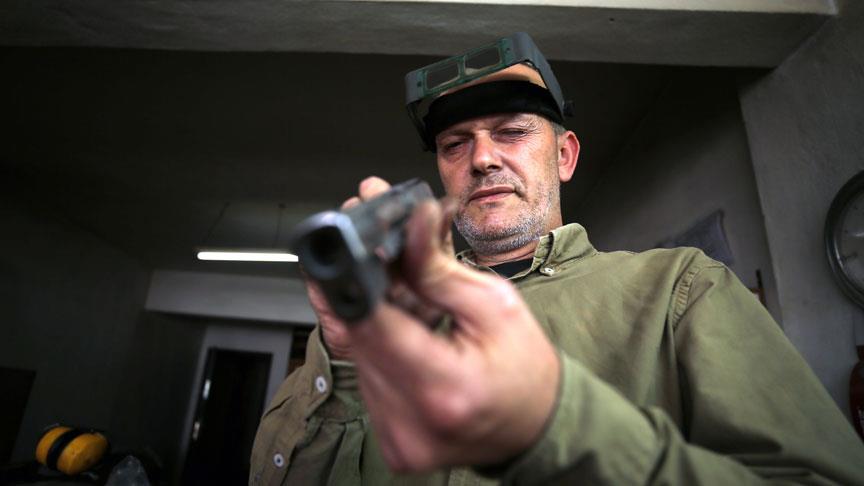 Yeni Sanayi Sitesi'ndeki atölyesinde farklı tür ve modelde işlemecilik yaparak silahlara 33 yıldır kendine özgü tasarım ve estetik katan 48 yaşındaki Lütfi Varol, hem mesleğini ayakta tutmak hem de siparişleri yetiştirebilmek için çabalıyor.