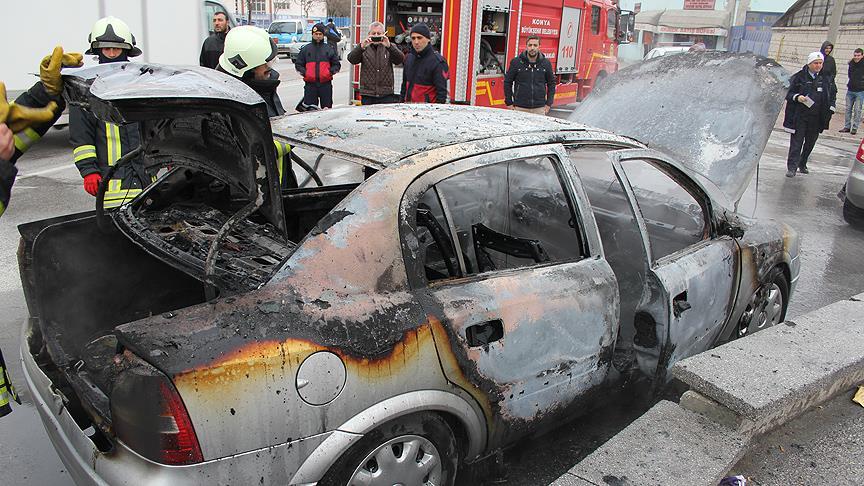Konya'da park ettiği otomobilde Açıköğretim Fakültesinin sınav saatini bekleyen öğrencinin otomobili yandı.