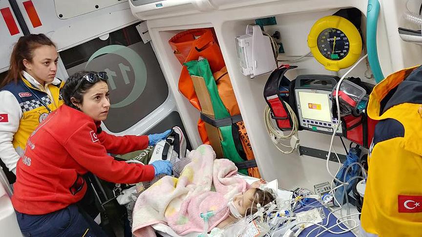 Sağlık Bakanlığı'na bağlı doktorlu ekip gözetiminde uçak ambulans ile Kayseri'ye getirilen 2 yaşındaki Evin, 112 ekiplerince, Kayseri Havalimanı'ndan alınarak Kayseri Şehir Hastanesi Çocuk Yoğun Bakım Ünitesi'ne nakledildi.