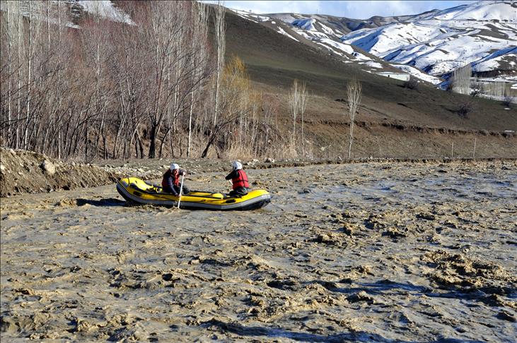 Bunun üzerine harekete geçen sivil savunma arama kurtarma ekipleri, kısa sürede beldeye ulaştı. Beraberlerindeki kurtarma botunu suya indiren 2 sivil savunma görevlisi, yaklaşık 25 metre genişliğindeki dereyi, önce her iki kıyıdaki ağaçlara ardından bota bağladıkları halatlarla geçmeye çalıştı.