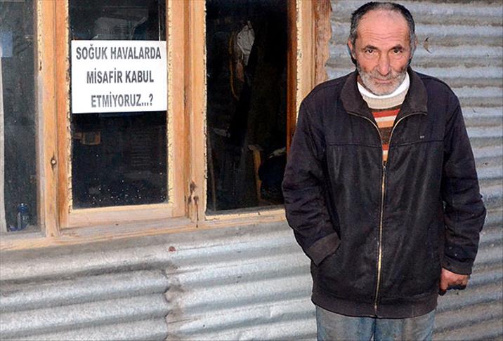Kulübesine gelen arkadaşlarının sıcak sobanın başında yemek yedikten sonra gittiğini ifade eden Köroğlu, ''Ben soğuktan korunmak için sahilde odun ve kömür topluyorum. Bu nedenle yazıyı asmak zorunda kaldım. Bu yazıyı astıktan sonra gelen kişi sayısı azaldı. Yazıyı gören artık rahatsızlık vermiyor. Gelen zaten odunla kömürle gelecek'' diye konuştu.