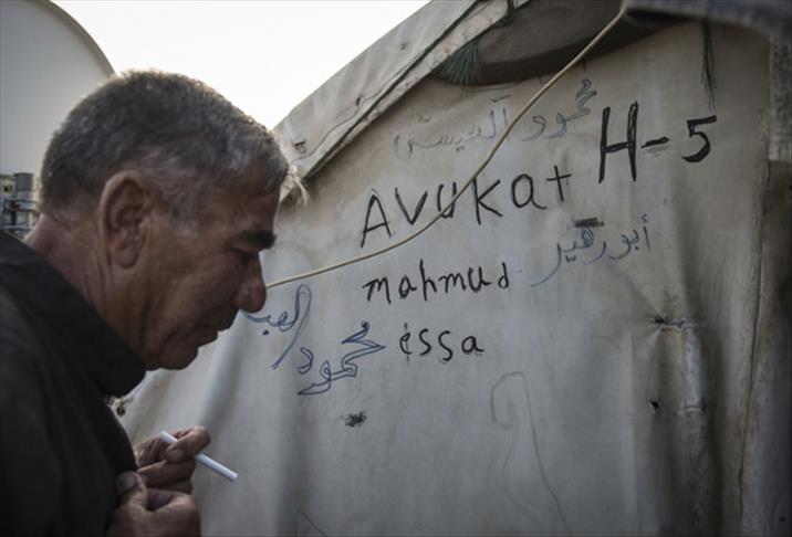Çok sevdiği mesleğinden ayrı kalan Muhammed'in, eşi, kızı ve torunuyla barındığı çadıra Türkçe ve Arapça yazdığı "avukat" yazısı, görenlerin dikkatini çekiyor.