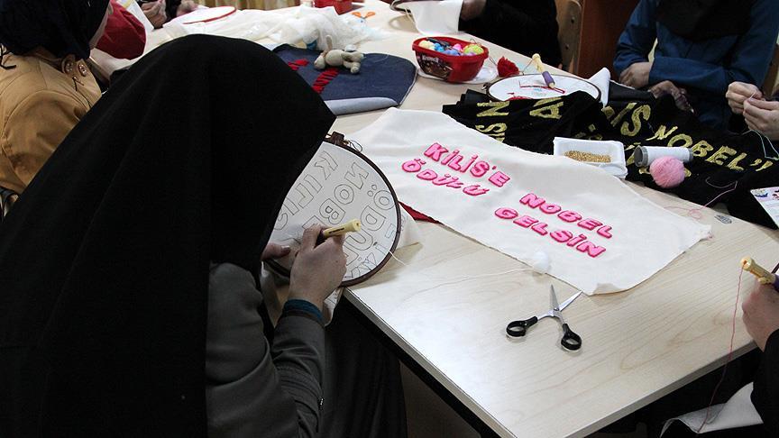 Türkiye'nin en küçük illeri arasında yer alan ve kendi nüfusundan fazla Suriyeliye ev sahipliği yapan Kilis'in Nobel Barış Ödülü'nü alabilmesi için kolları sıvayan Suriyeli kadınlar, kentin kendileri için gösterdiği fedakarlığı iğne iplikle ilmek ilmek nakışlarına işliyor.