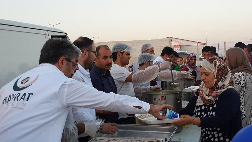 Ülkelerindeki iç savaştan kaçarak Türkiye'ye sığınan Suriyelilere yönelik ramazan yardımları devam ediyor. Hayrat İnsani Yardım Derneği de Suruç çadır kentinde kalan yetim ve öksüz çocuklara hayırseverlerin desteğiyle toplanan yardımla iftar imkanı sağladı.