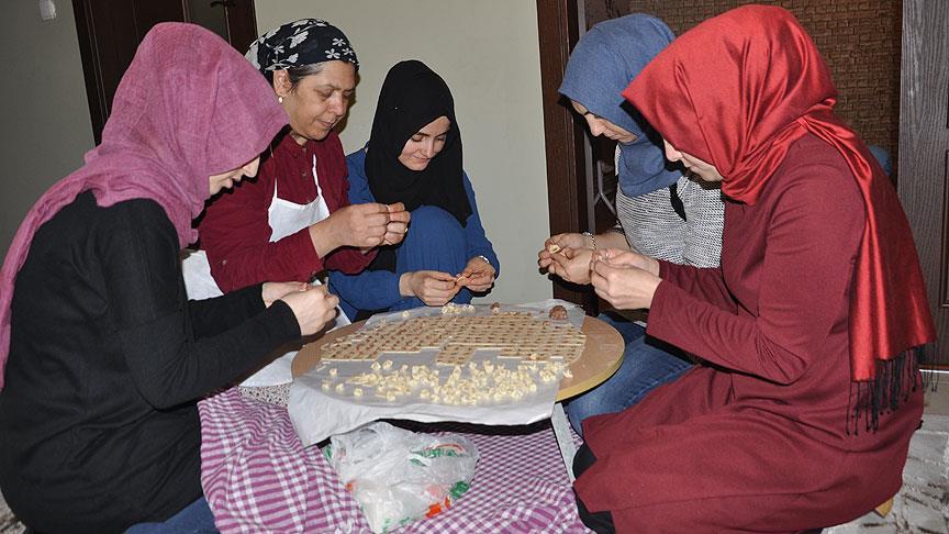 Suriyeli sığınmacılara yardım için mantı yapıyorlar