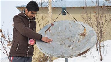Kışın kar yağışının fazla olduğu Yüksekova'da, çanaklarının kar tutmasıyla, televizyon yayının kesilmesinin önüne geçmeye çalışan vatandaşlar, çareyi çanaklara vazelin sürmekte buldu.
