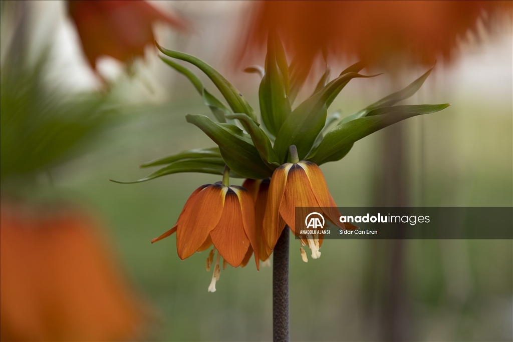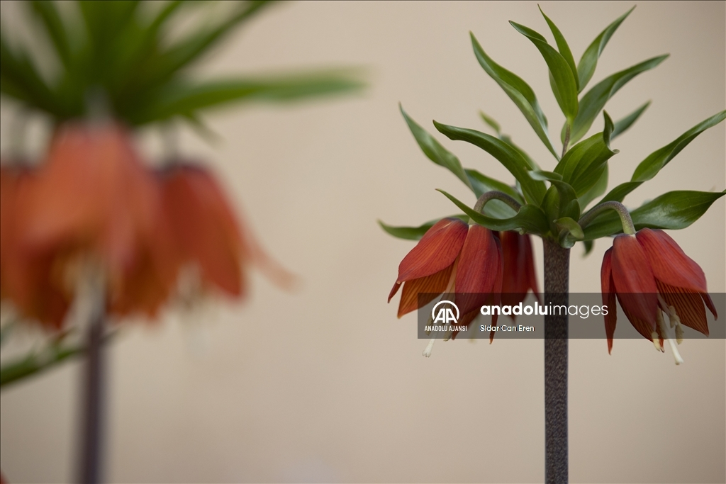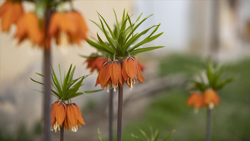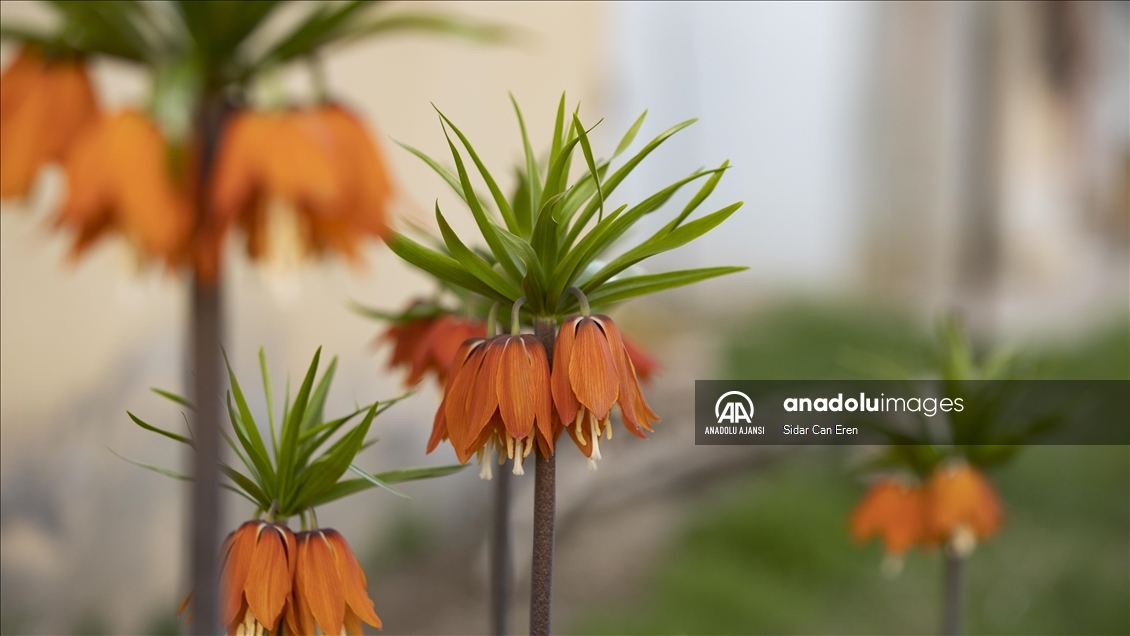Pulur Mahallesi'ndeki bir evin bahçesinde de "ağlayan gelin" olarak nitelendirilen ters laleler açtı.