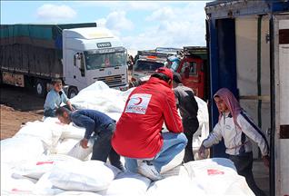 Türk Kızılayı da kampanya kapsamında sınırın diğer tarafına yardımlarını sürdürüyor.