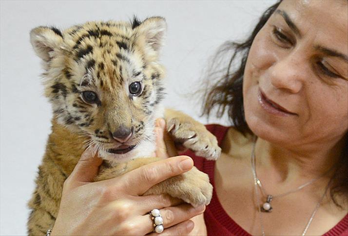 Annesinin bakmayı reddettiği yavru kaplan Koko Cango, Ankara Büyükşehir Belediyesi Atatürk Orman Çiftliği (AOÇ) Hayvanat Bahçesi çalışanları tarafından biberon ve bebek beziyle adeta bebek gibi büyütülüyor.