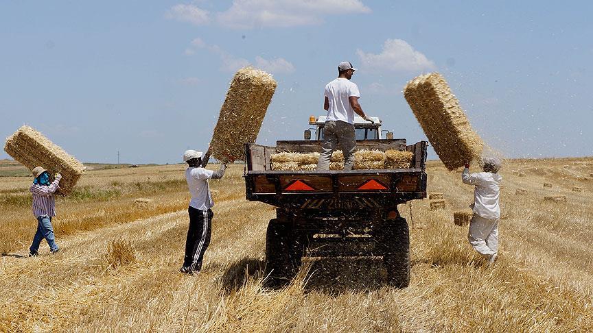 Edirne'de buğday tarlaları biçildikten sonra hayvancılıkta yem olarak kullanılan samanlar bağlama makinasıyla bağlandıktan sonra tarlaya bırakılıyor. Balyaların tarladan ahırlara taşınması ise sezonluk çalışan emekçilere kalıyor.