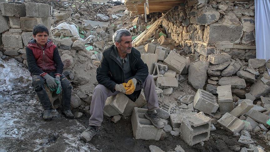 İran'daki depremlerin en çok hissedildiği Van'ın Başkale ilçesinde 8 çocuk babası Hüsnü Araslan, eşi ve 2 çocuğunu yıkılan evinin enkazından kendi imkanlarıyla kurtardı.