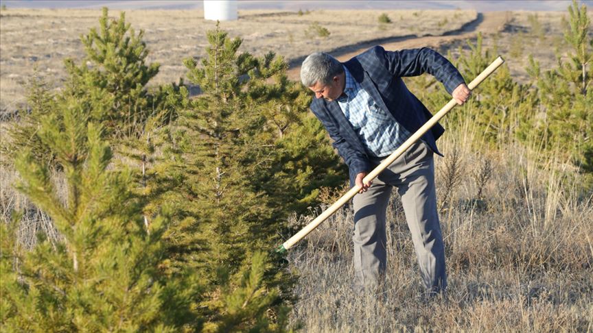 Yozgat'ın Sarıkaya ilçesinde 40 yıldır esnaflık yapan Abdullah Karataş, 2000 yılında birikimleriyle başlattığı "fidan dikme seferberliğini", 2008 yılından bu yana emekli maaşıyla sürdürüyor.