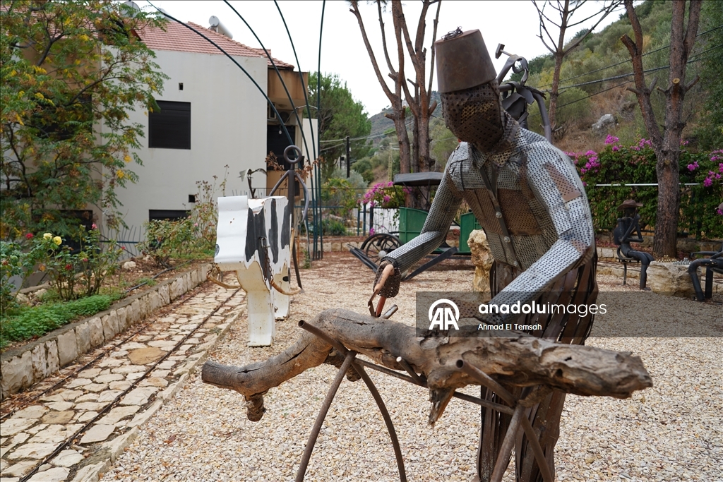 داخل متحف "شظايا"، الذي بناه بيديه يستقبل نصار (60 عاما) زواره برائحة الحديد وصوت الماء المتساقط بين الصخور، هناك، تتوزّع عشرات المنحوتات التي تحول مآسي الحرب إلى مشاهد حياة، وتستعيد تفاصيل القرية اللبنانية قبل أزيز الرصاص.