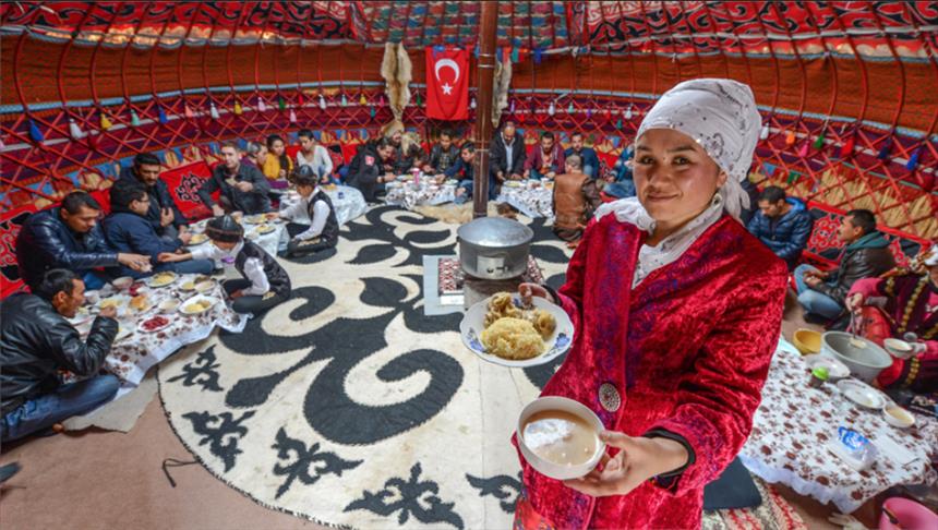 يعمل الأتراك القرغيز الذين استقروا في تركيا على التعريف بثقافتهم وعاداتهم ومطبخهم المتميز، في خيمة تقليدية أقاموها بمنطقة "أولوبامير" شمالي ولاية "وان" بجنوب شرق البلاد.