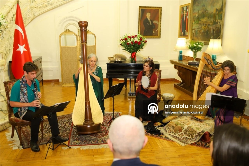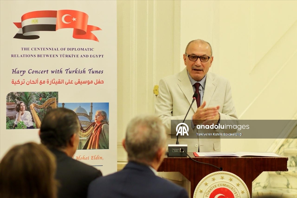أقام فنانون أتراك ومصريون، الأحد، حفلا موسيقيا بالقيثارة في السفارة التركية بالقاهرة، احتفالا بالذكرى المئوية للعلاقات الدبلوماسية بين تركيا ومصر.