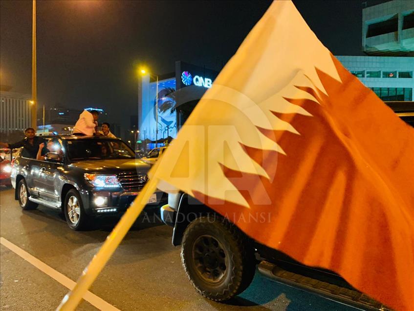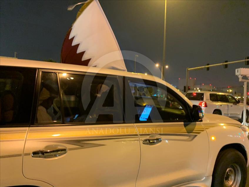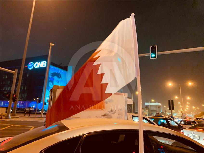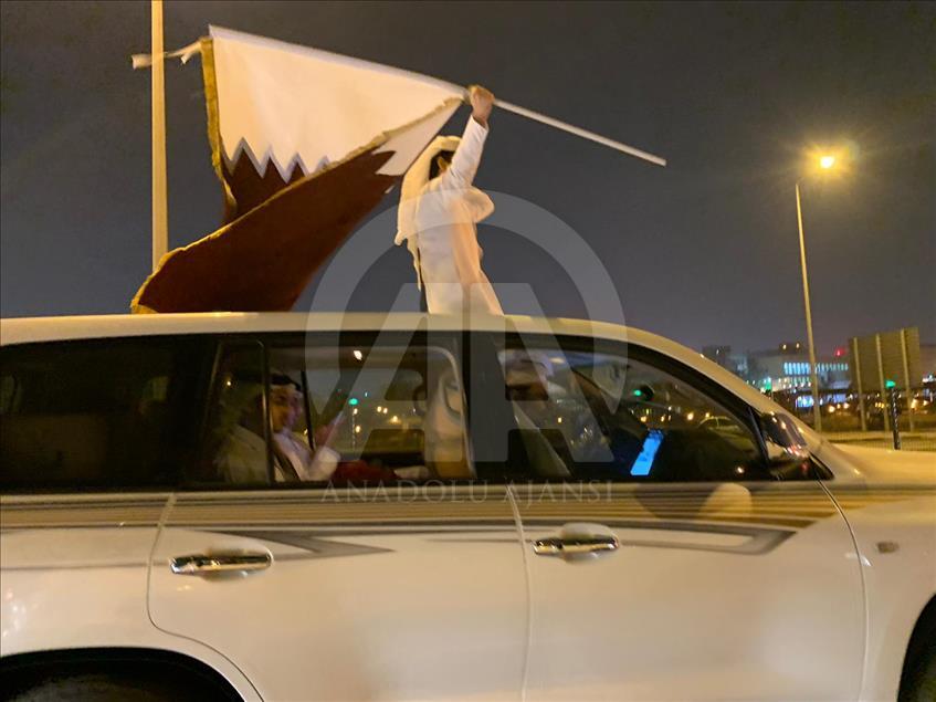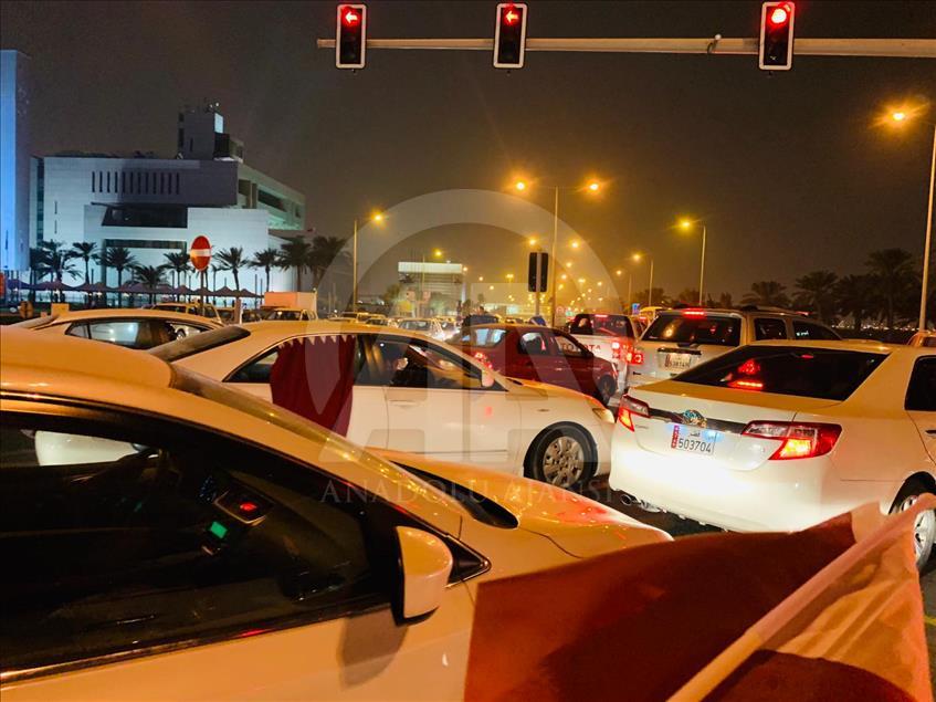 اكتظ كورنيش الدوحة بالسيارات التي تحمل أعلام قطر كما جرت احتفالات كبيرة داخل عدد من المراكز التجارية.