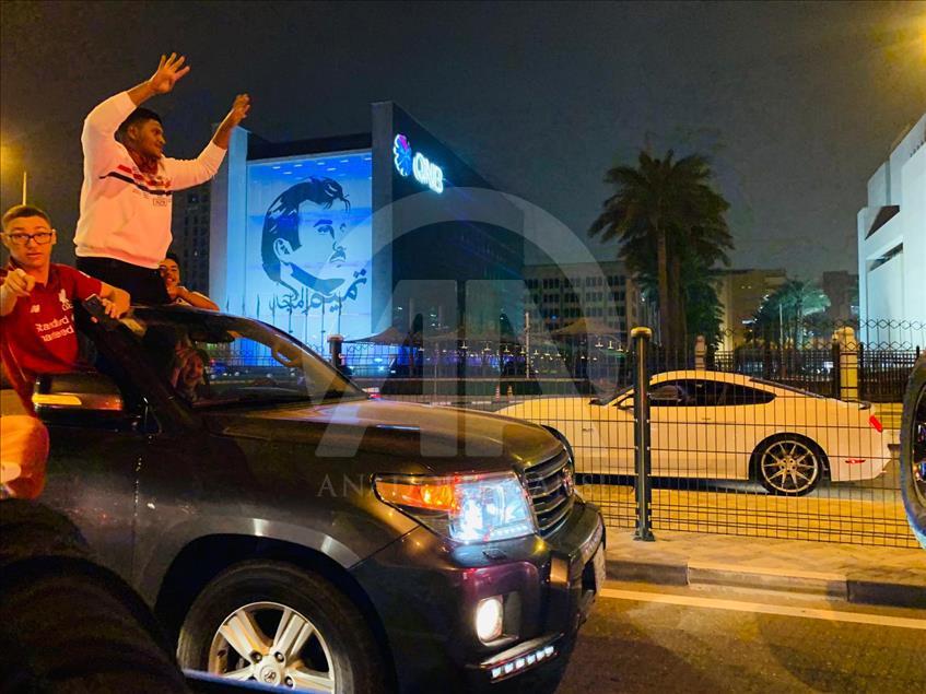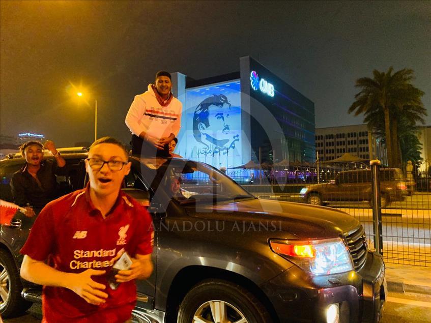 خرج الآلاف من القطريين والمقييمن إلى شوارع العاصمة الدوحة فرحا بفوز المنتخب العنابي على الإمارات برباعية نظيفة في نصف نهائي أمم آسيا.