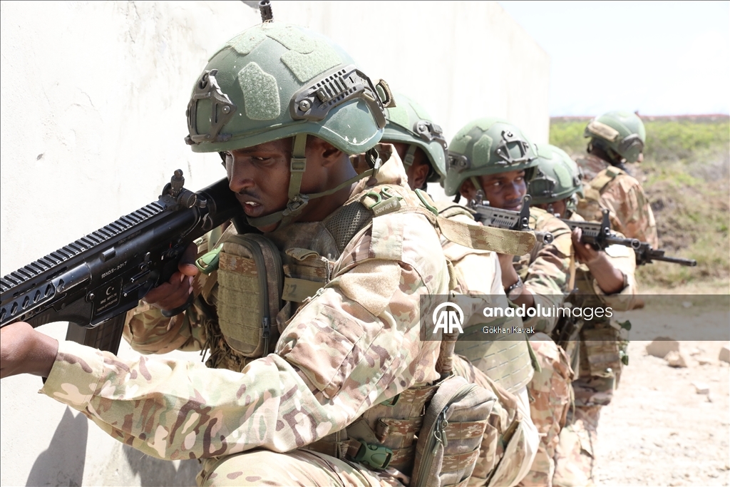 تواصل القوات المسلحة التركية منذ عام 2017 تدريب الجنود الصوماليين في قاعدة التدريب العسكرية التركية "تركصوم" بالعاصمة مقديشو، دعما للسلام والاستقرار في الصومال.