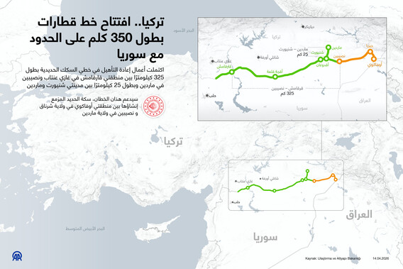 تركيا.. افتتاح خط قطارات بطول 350 كلم على الحدود مع سوريا