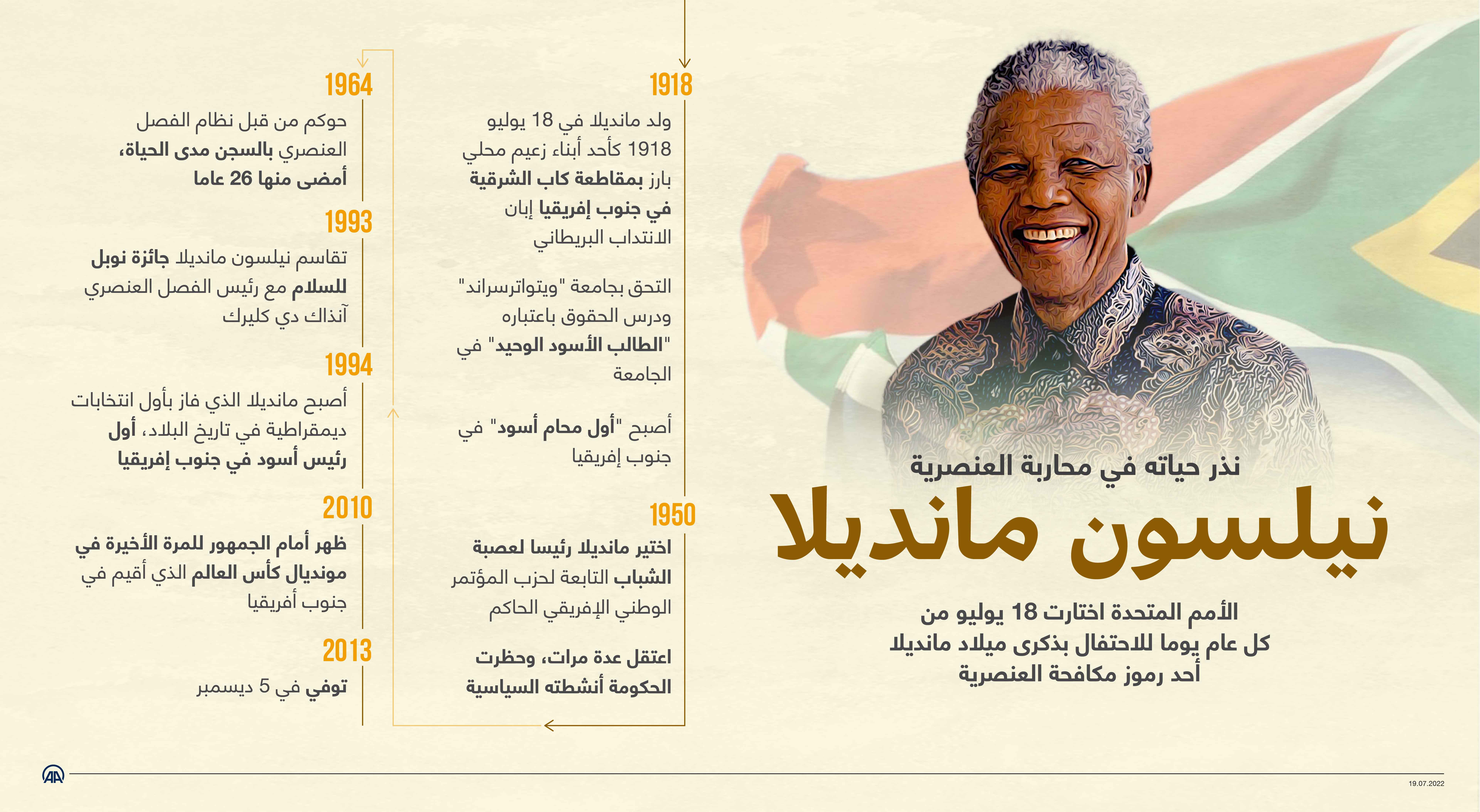 الأمم المتحدة اختارت 18 يوليو من كل عام يوما للاحتفال بذكرى ميلاد مانديلا أحد رموز مكافحة العنصرية.