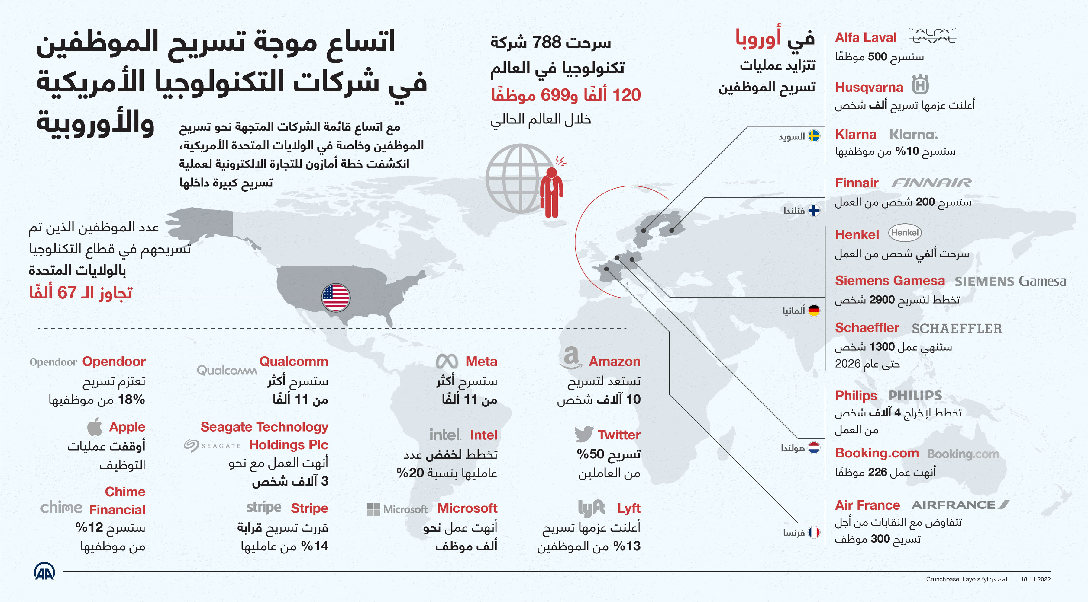 اتساع موجة تسريح الموظفين في شركات التكنولوجيا الأمريكية والأوروبية