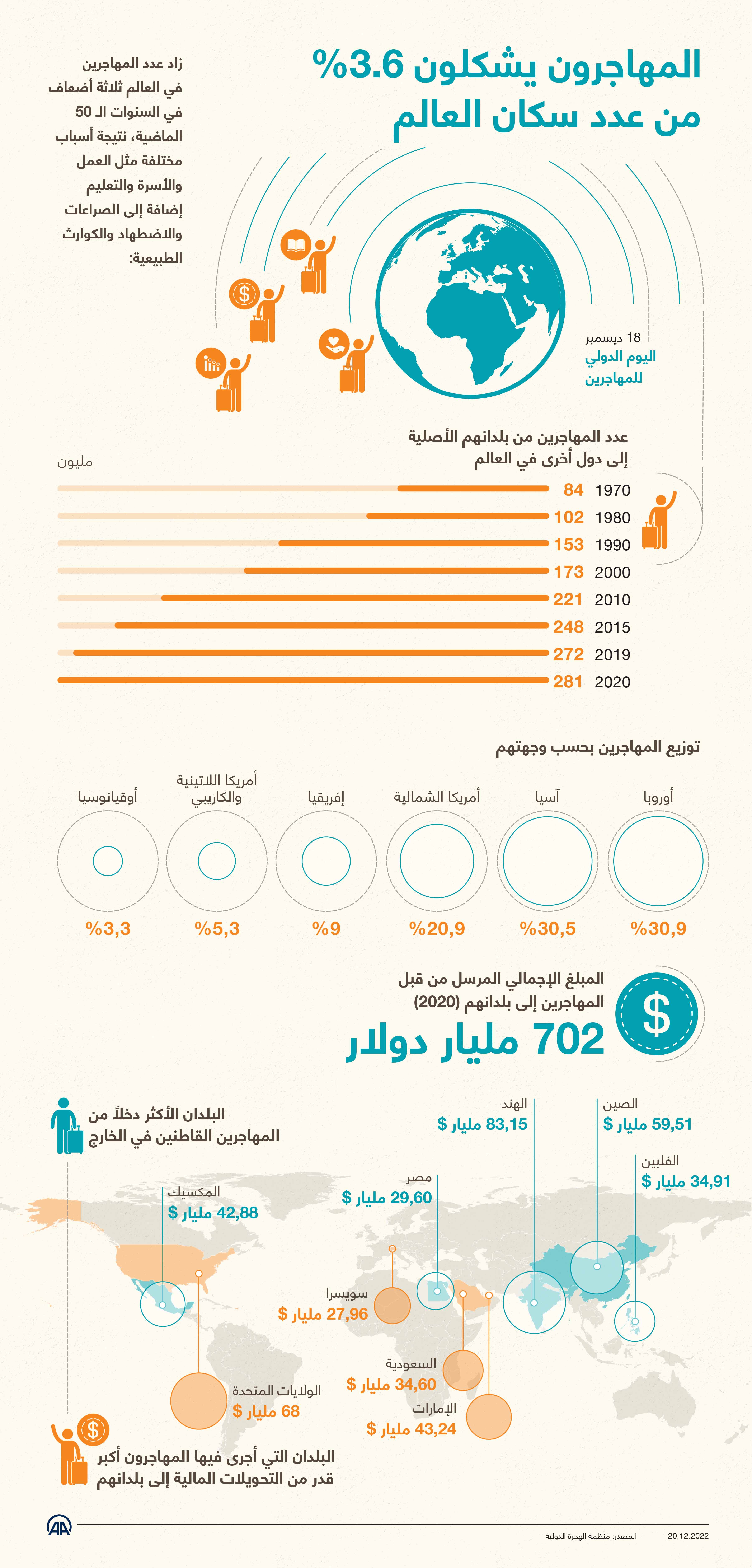 المهاجرون يشكلون 3.6 بالمئة من عدد سكان العالم