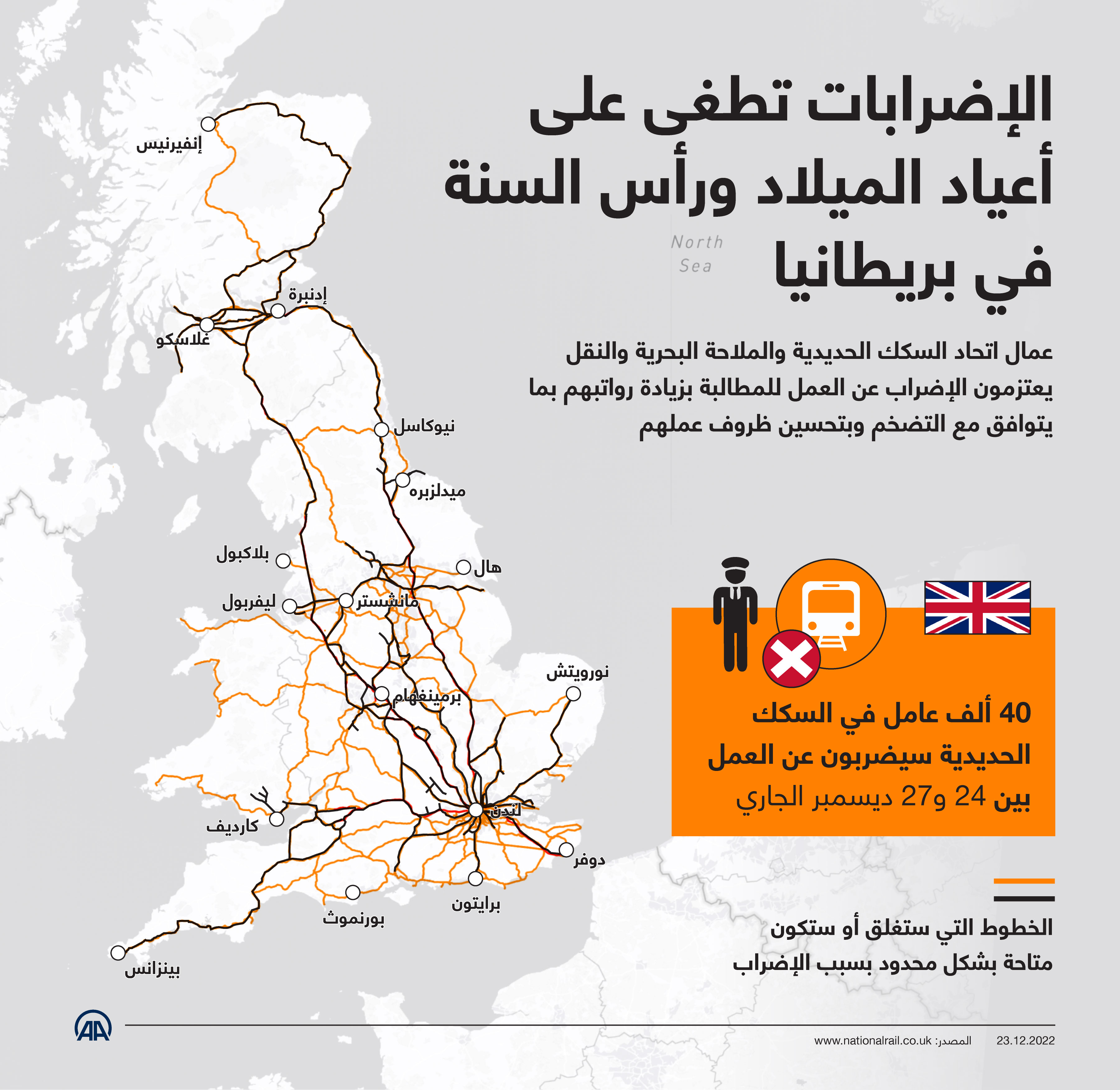 عمال اتحاد السكك الحديدية والملاحة البحرية والنقل يعتزمون الإضراب عن العمل للمطالبة بزيادة رواتبهم بما يتوافق مع التضخم وبتحسين ظروف عملهم