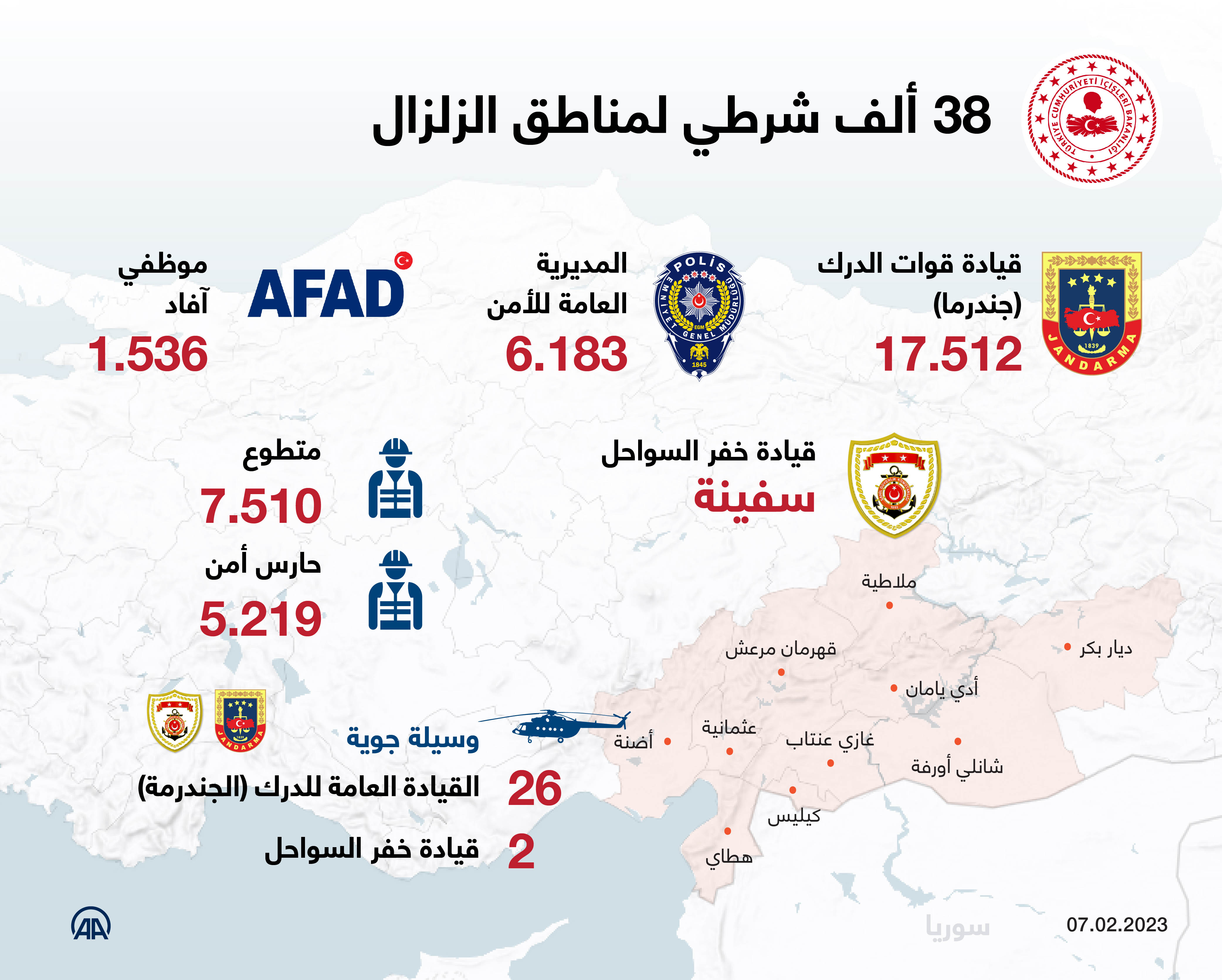 38 ألف شرطي لمناطق الزلزال