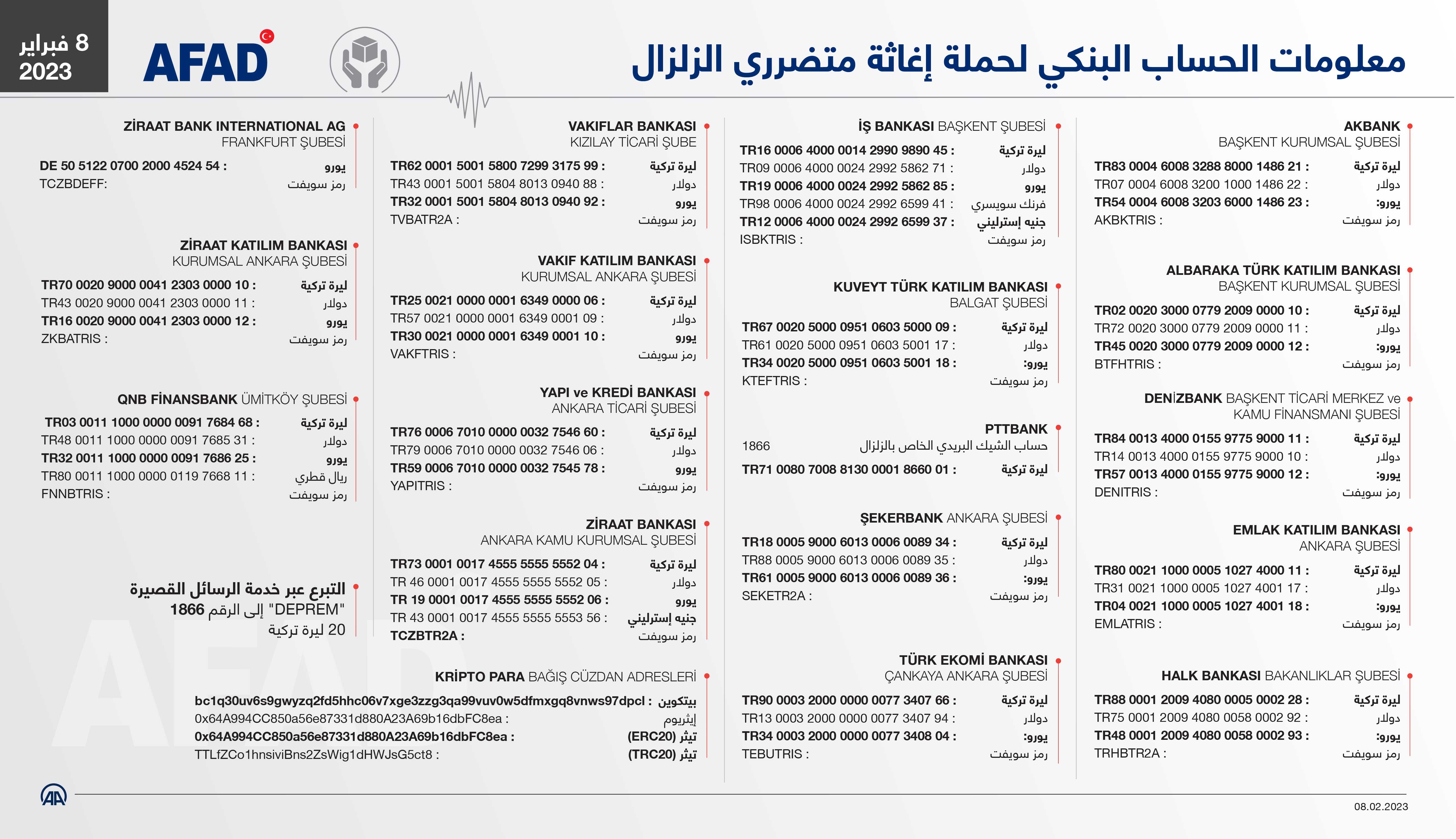 معلومات الحساب البنكي لحملة إغاثة متضرري الزلزال