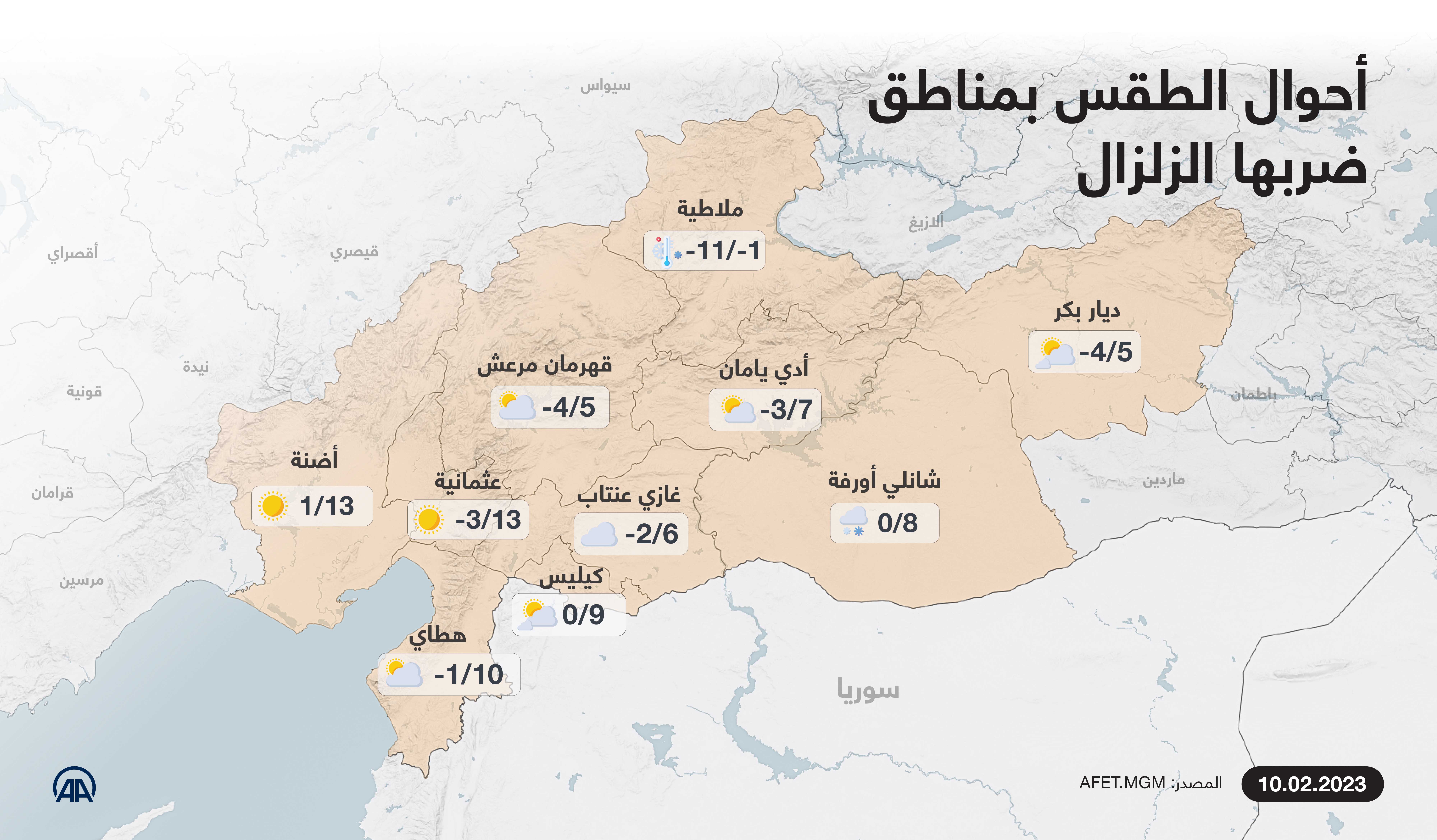 أحوال الطقس بمناطق ضربها الزلزال