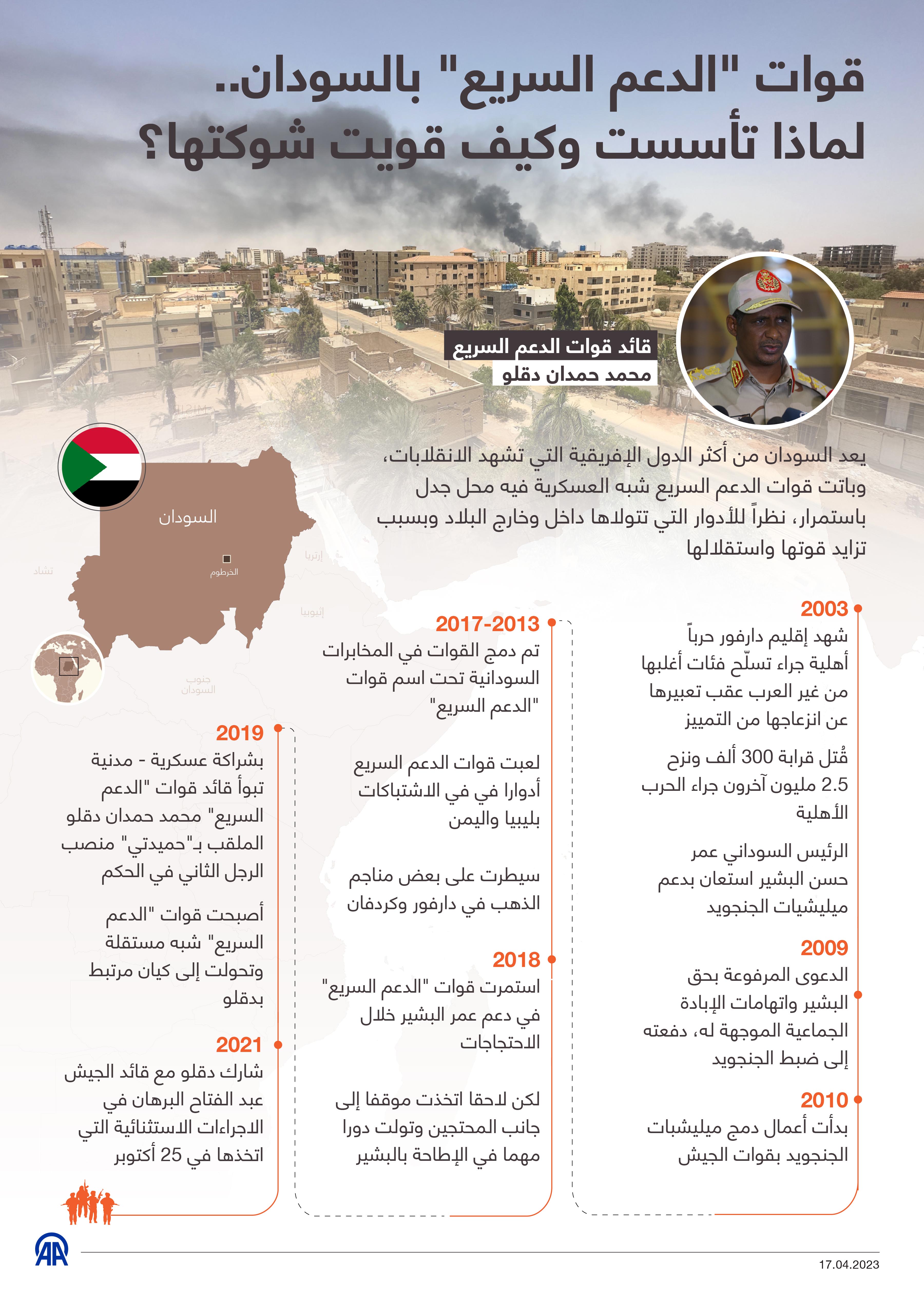 يعد السودان من أكثر الدول الإفريقية التي تشهد الانقلابات، وباتت قوات الدعم السريع شبه العسكرية فيه محل جدل باستمرار، نظراً للأدوار التي تتولاها داخل وخارج البلاد وبسبب تزايد قوتها واستقلالها.
