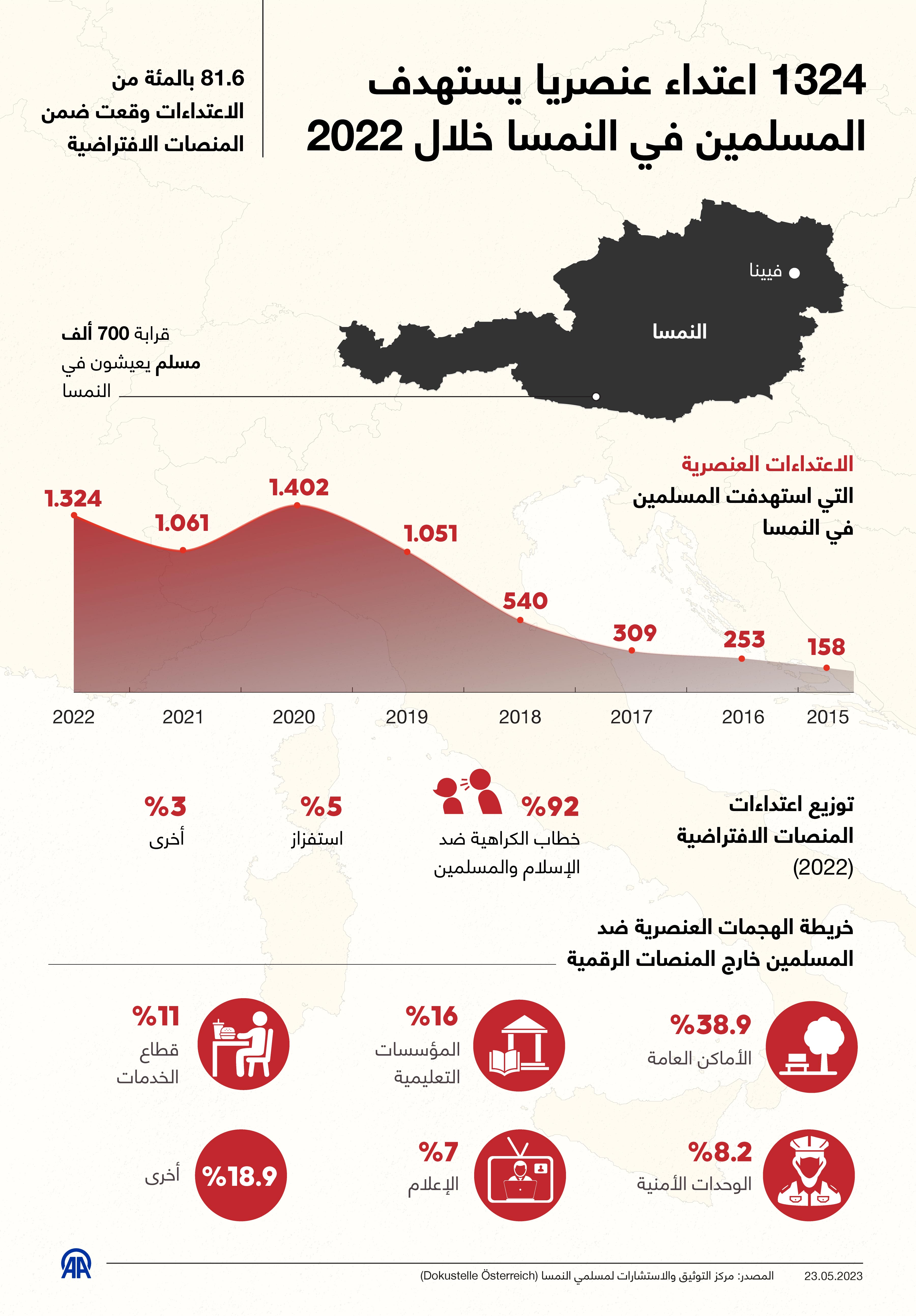 1324 اعتداء عنصريا يستهدف المسلمين في النمسا خلال 2022