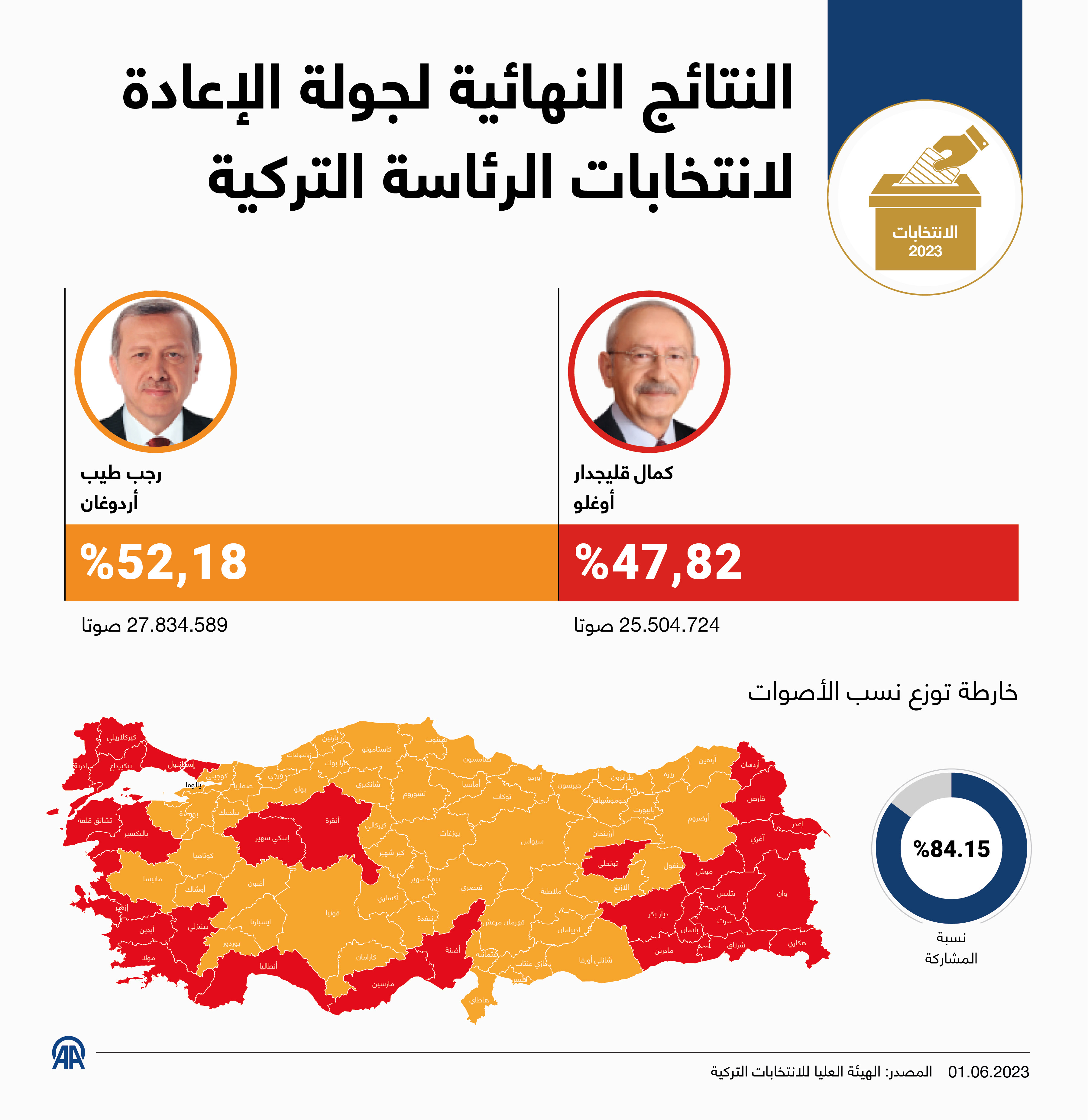 النتائج النهائية لجولة الإعادة لانتخابات الرئاسة التركية