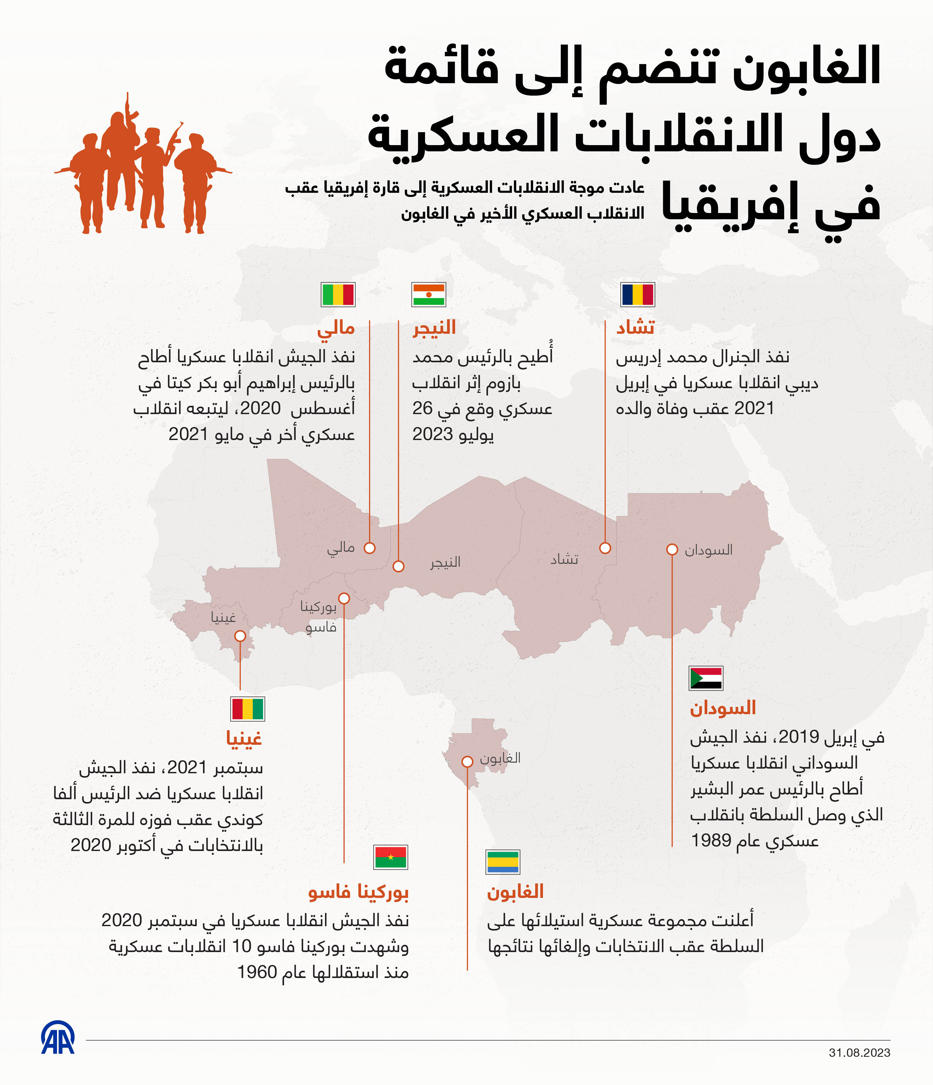 عادت موجة الانقلابات العسكرية إلى قارة إفريقيا عقب الانقلاب العسكري الأخير في الغابون.