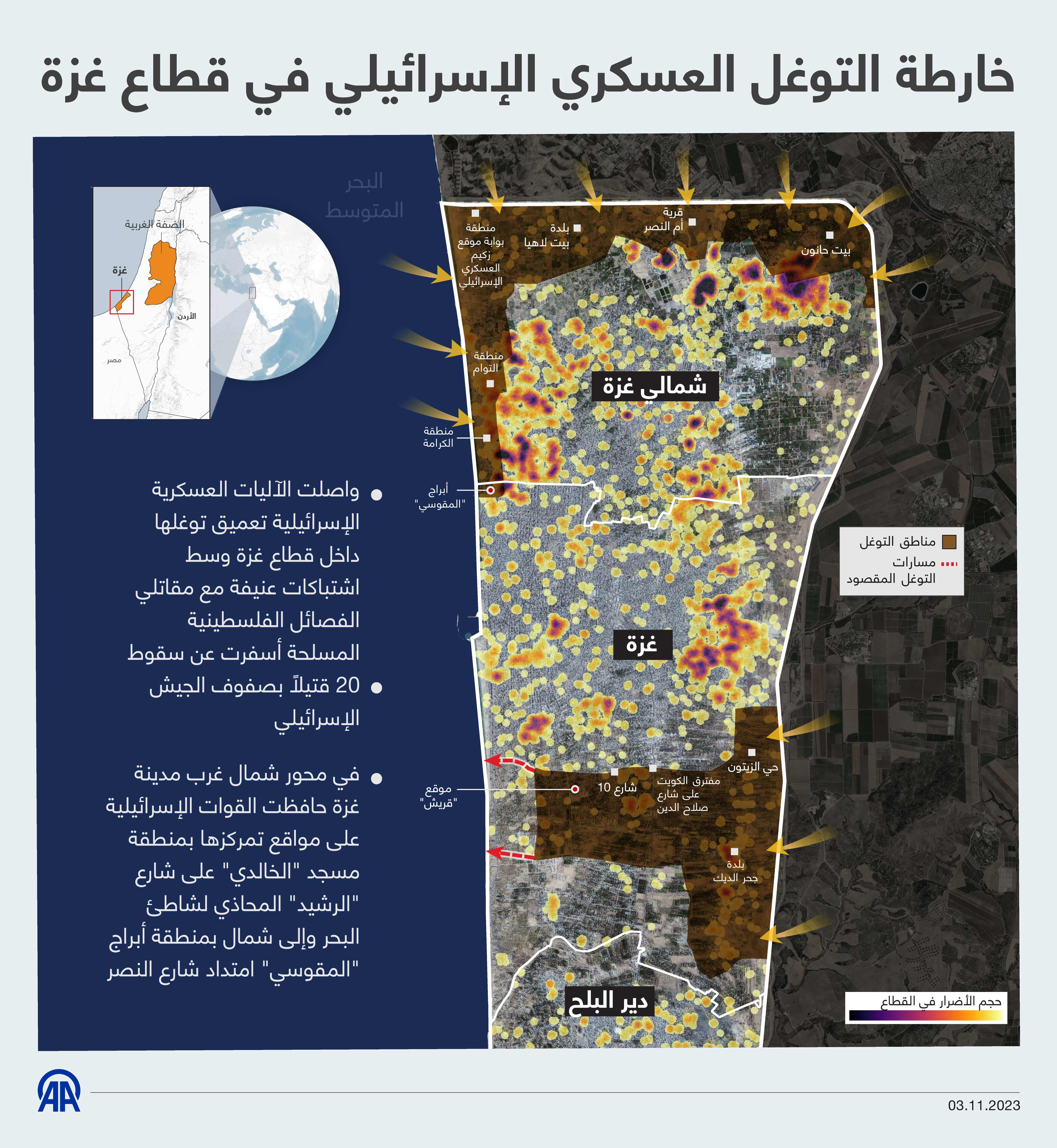 خارطة التوغل العسكري الإسرائيلي في قطاع غزة