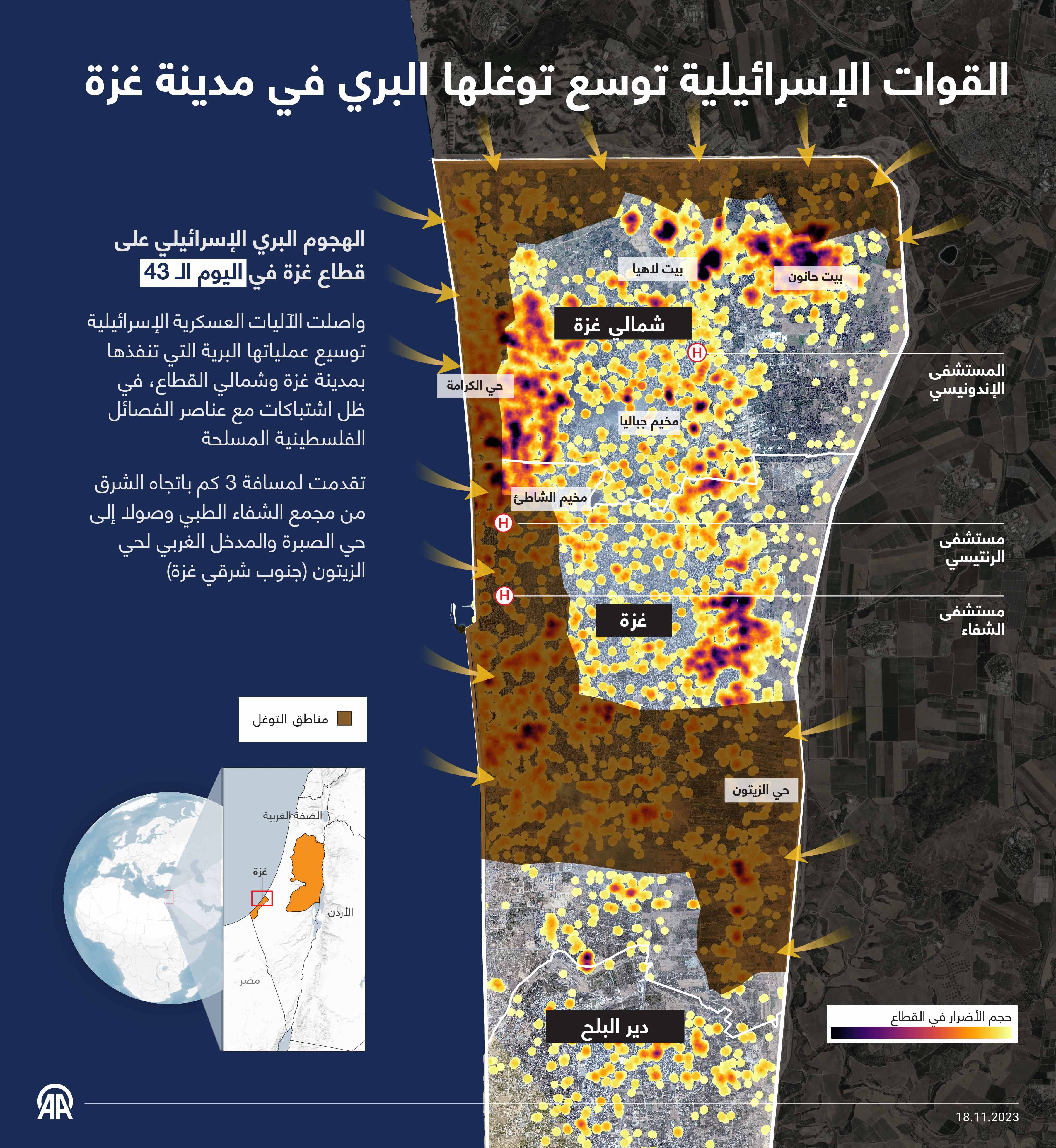 واصلت الآليات العسكرية الإسرائيلية توسيع عملياتها البرية في مدينة غزة وشمالي القطاع، في ظل اشتباكات مع عناصر الفصائل الفلسطينية المسلحة.